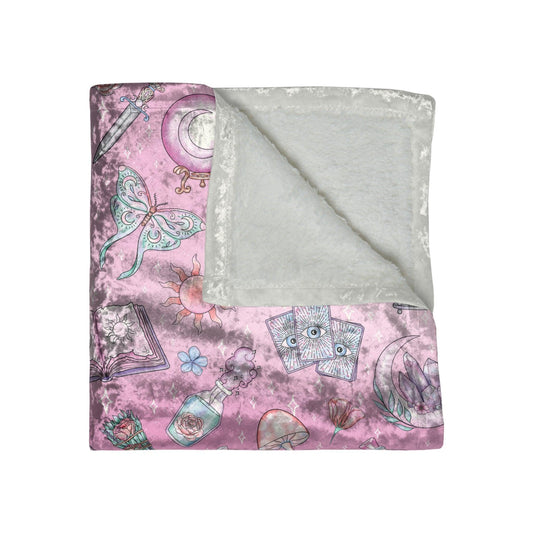 Kawaii Pastel Goth Witchy Whimsigoth Pink Crushed Velvet Blanket