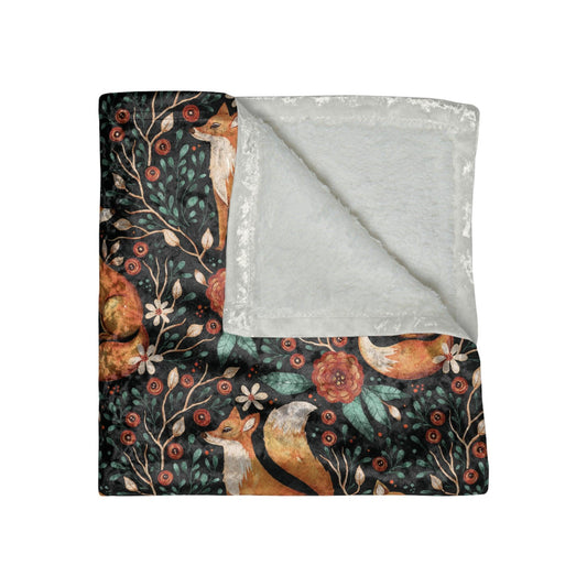 Fox Enchanted Forest Woodland Dark Cottagecore Watercolor-Style Multicolor Crushed Velvet Blanket