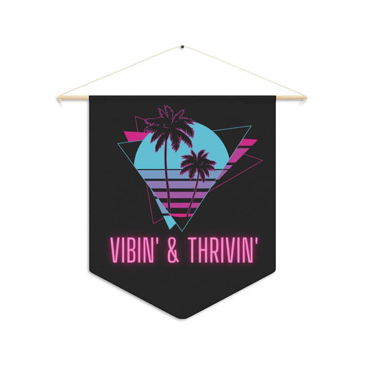 Retro Vaporwave 80s 90s Palm Tree Vibin' & Thrivin' Wall Pennant