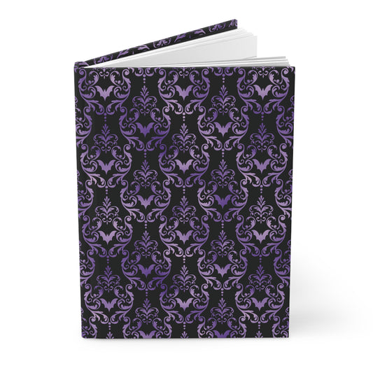 Dark Academia Damask Bat, Victorian Goth Inspired Purple & Black Glam Goth Matte Hardcover Journal