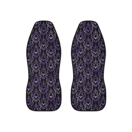 Dark Academia Damask Bat, Victorian Goth Inspired Purple & Black Glam Goth Car Seat Covers