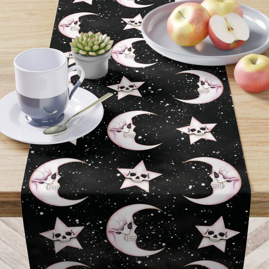 Goth Christmas Celestial Moon & Stars, Whimsical Kawaii Creepmas Black Table Runner