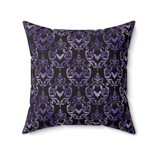 Dark Academia Damask Bat, Victorian Goth Inspired Purple & Black Glam Goth Pillow