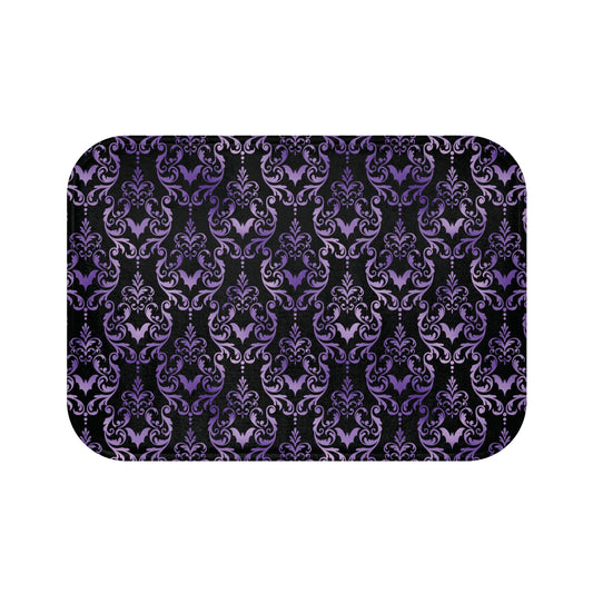 Dark Academia Damask Bat, Victorian Goth Inspired Purple & Black Glam Goth Bath Mat