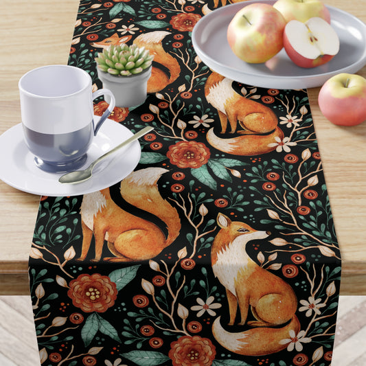 Fox Enchanted Forest Woodland Dark Cottagecore Multicolor Watercolor Style Table Runner