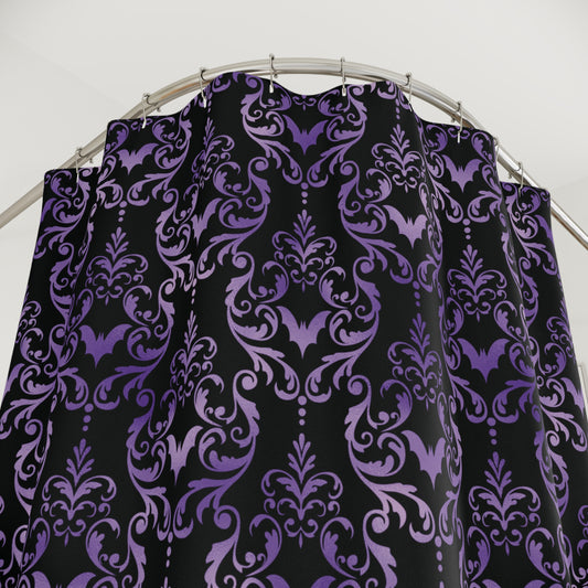 Dark Academia Damask Bat, Victorian Goth Inspired Purple & Black Glam Goth Shower Curtain