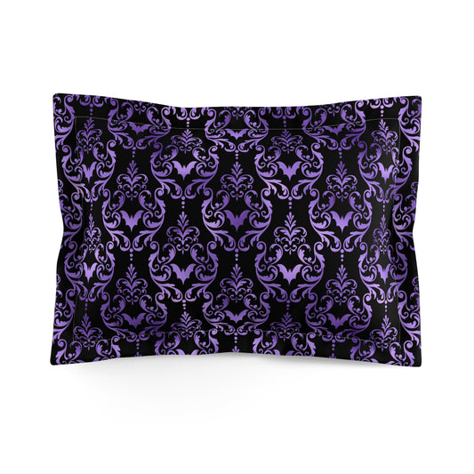 Goth Damask Purple Bats Halloween Glam Goth Black Pillow Sham