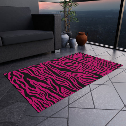 Pink Tiger Stripe Animal Print Indoor/Outdoor Accent Rug