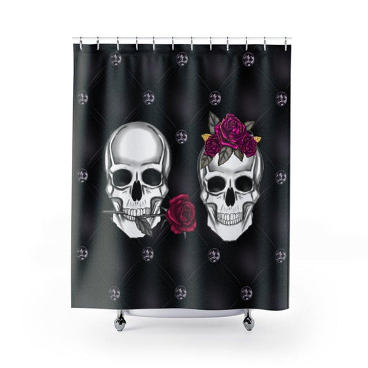 Skull Couple Glam Goth Black Halloween Shower Curtain