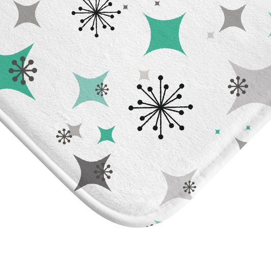 Retro Starbursts 50s Mid Century Mod Teal Green and Gray Bath Mat