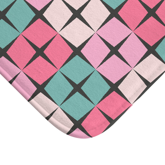 Palm Springs Retro 50s 60s Atomic Star Mid Century Mod Pink & Turquoise Blue Bath Mat