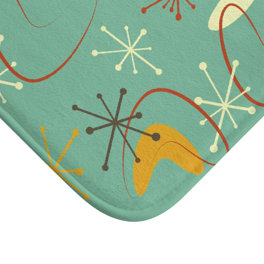 Retro 50's Atomic Burst and Boomerang Mid Century Teal & Mustard Bath Mat