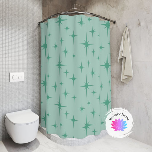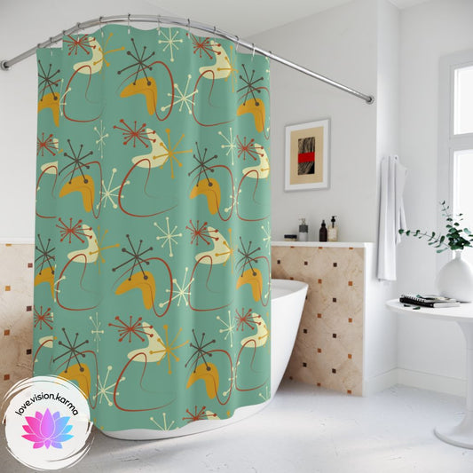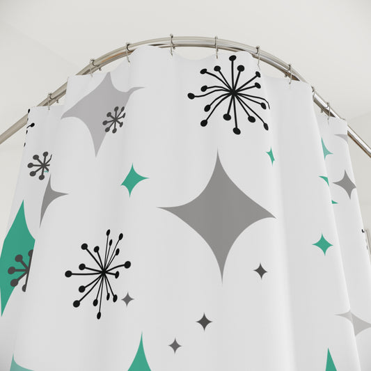 Retro MCM Atomic Starburst Mint Green Shower Curtain