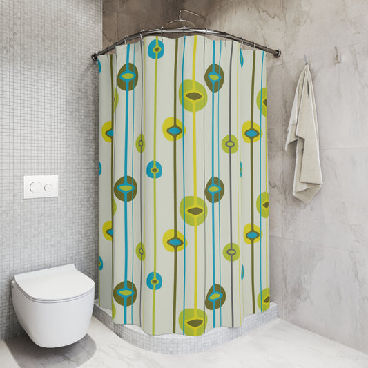 Vintage 50s, Retro Mid Century Modern Lines and Orbs Blue & Green Shower Curtain