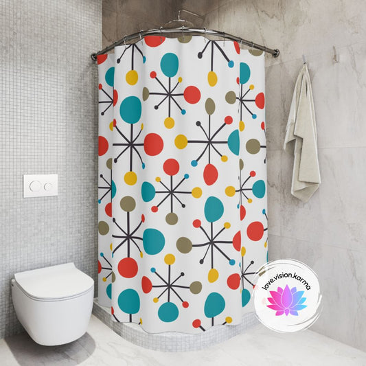 Retro 50s Atomic Starburst Colorful MCM Shower Curtain