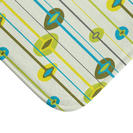 Vintage 50s Retro Mid Century Modern Lines & Orbs Blue & Green Bath Mat