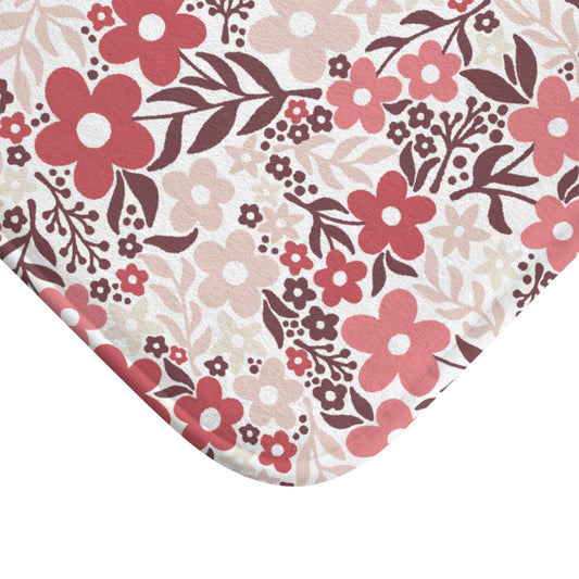 Retro Minimalist Vintage Inspired Scandi Floral Cottagecore MCM Coral Bath Mat