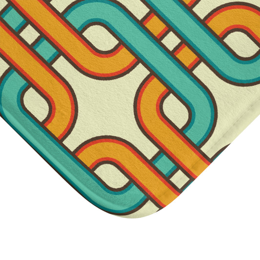 Retro 60's Links Mid Century Mod Blue, Orange & Cream Bath Mat