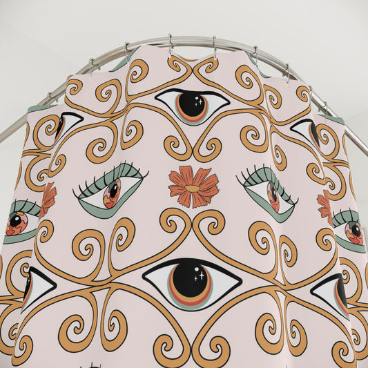 Retro Mod Boho Flowers Multicolor Shower Curtain