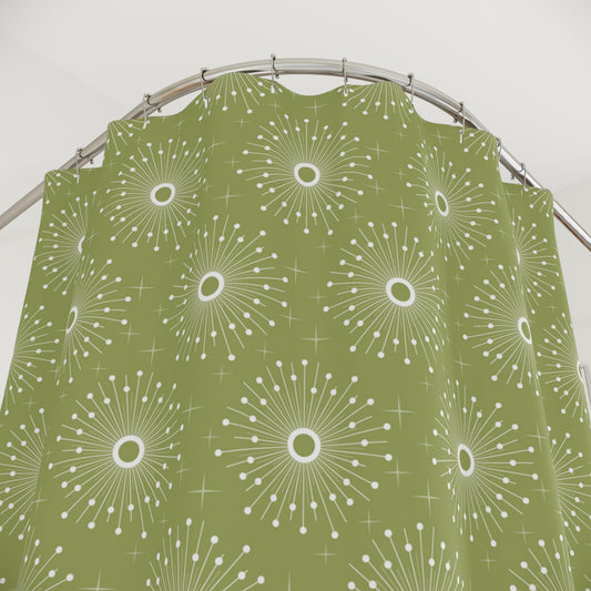 Retro 50s Atomic Burst MCM Green Shower Curtain