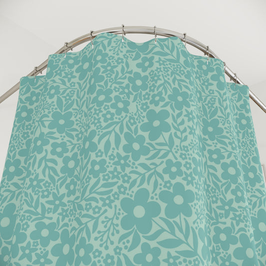 Retro Scandi Floral Minimalist Teal Cottagecore MCM Shower Curtain