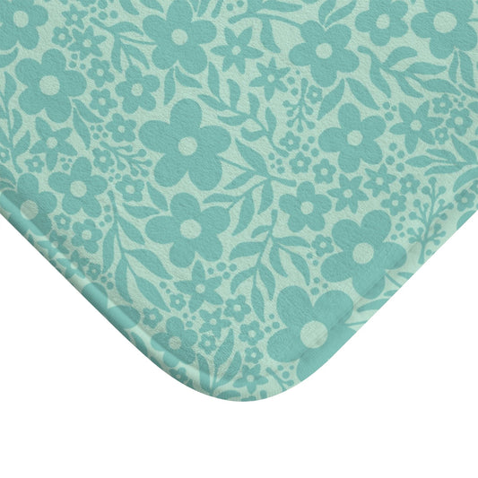 Minimalist Retro Scandi Floral Cottagecore Mid Century Teal Bath Mat