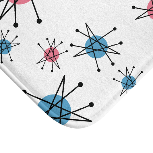 Retro 50s Starburst Franciscan Inspired Mid Century Mod Pink & Blue Bath Mat