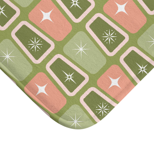 Retro 50s Atomic Age Bursts Pink & Green MCM Bath Mat