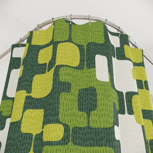 Retro Abstract Mid Century Modern Green Shower Curtain