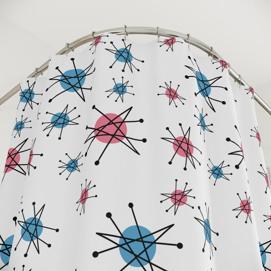 Retro 50s Starburst Mid Century Mod Franciscan Inspired Pink & Blue Shower Curtain