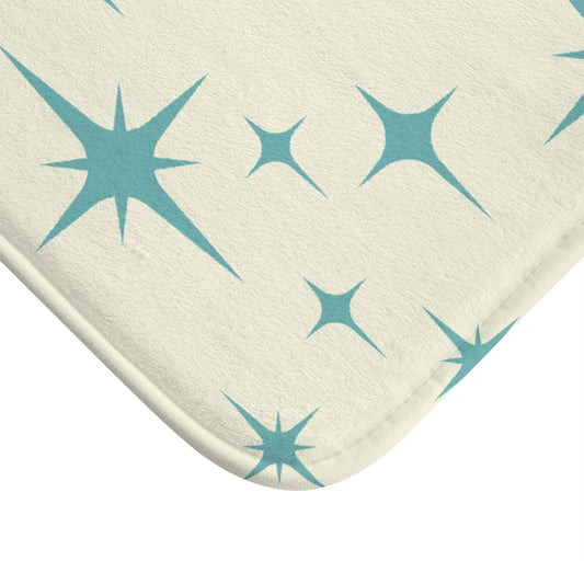 Retro 50s Atomic Starburst Blue & Off-White MCM Bath Mat