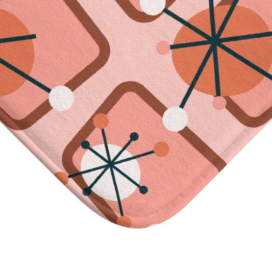 Retro 50s Atomic Starburst Pink Mid Century Modern Bath Mat