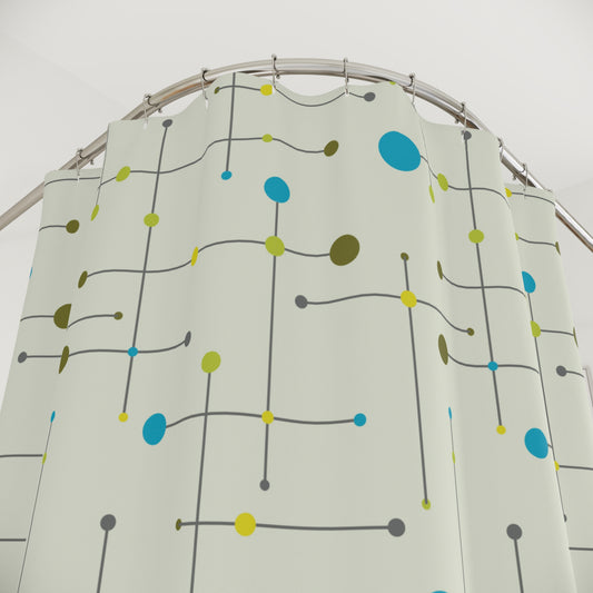 Retro 1950s, 60s Mid Century Lines and Circles Blue & Green Shower Curtain