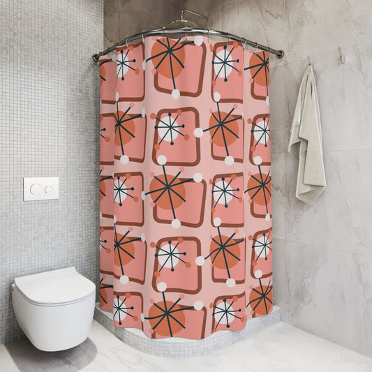 Retro 50s Atomic Starburst Pink Mid Century Modern Shower Curtain