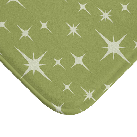 Retro Atomic Starburst 1950s Mid Century Chartreuse Green Bath Mat