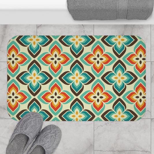 Retro 50s 60s Flowers Mid Century Blue & Orange Bath Mat