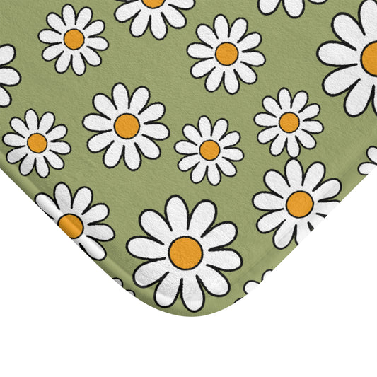 Retro 60's Daisy Sage Green MCM Boho Bath Mat