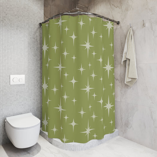 Retro 1950s Atomic Starburst Mid Century Green Shower Curtain