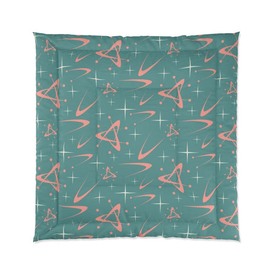 Atomic Age Boomerang and Starbursts Teal & Pink MCM Comforter