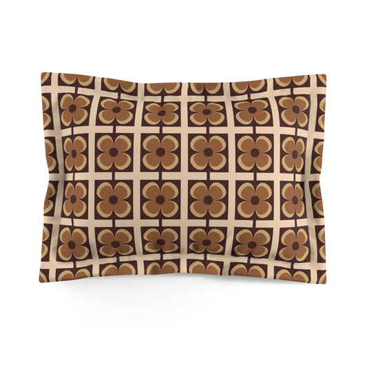 Retro 60s 70s Flowers Geometric Mid Century Modern Brown Pillow Sham