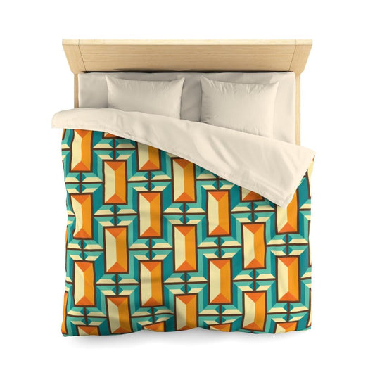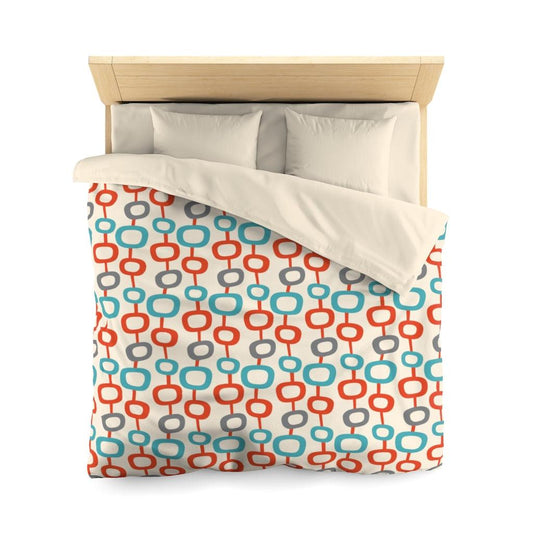 Retro Mod Abstract Blue, Orange & Grey MCM Duvet Cover