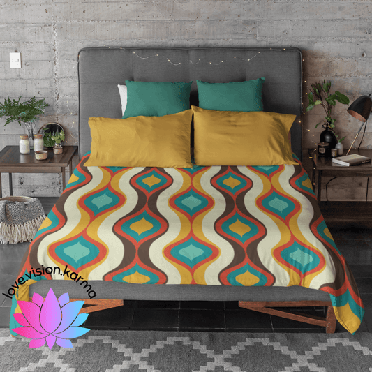 Retro 60's Geometric Waves Brown, Orange & Blue Mid Century Modern Duvet Cover