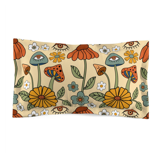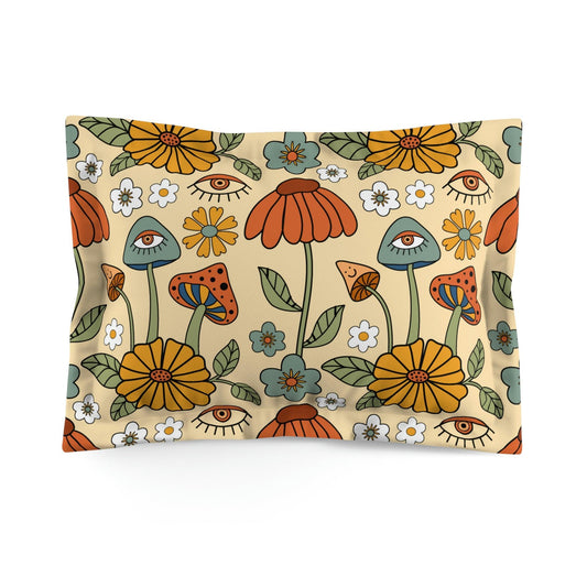 Boho Trippy Mushroom & Flowers Hippie Cottagecore MCM Pillow Sham