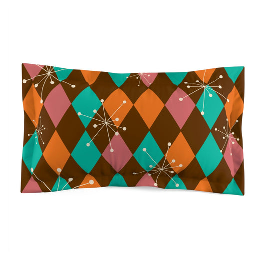 Retro Atomic Starburst Diamonds Mid Century Pink, Orange, Brown Pillow Sham