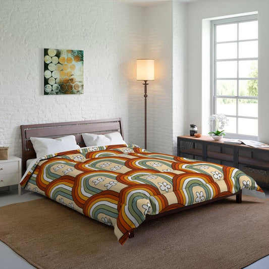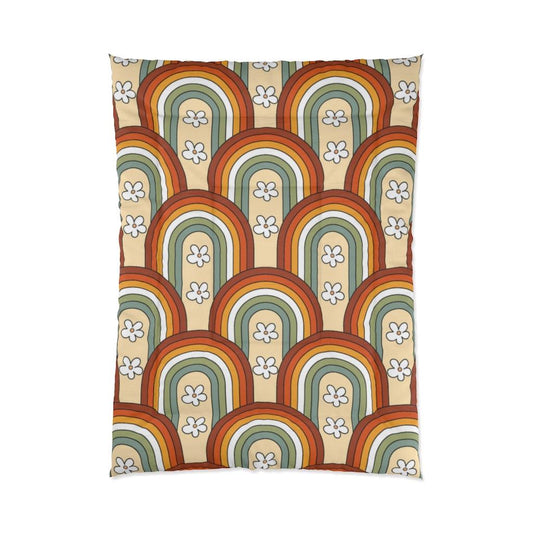 Boho Rainbows and Flowers Retro Multicolor Comforter