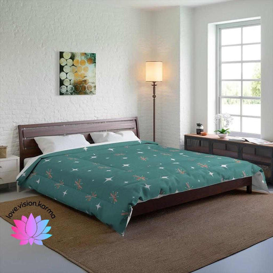 Atomic Burst Mid Century Mod Teal & Pink Comforter