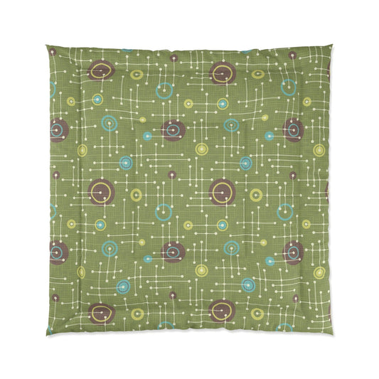 Retro 50s Eames Inspired MCM Lines Green Comforter