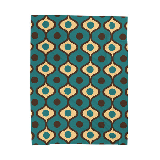 Retro 60s 70s Mid Century Mod Funky Geo Blue, Cream & Brown Lightweight Velveteen Blanket
