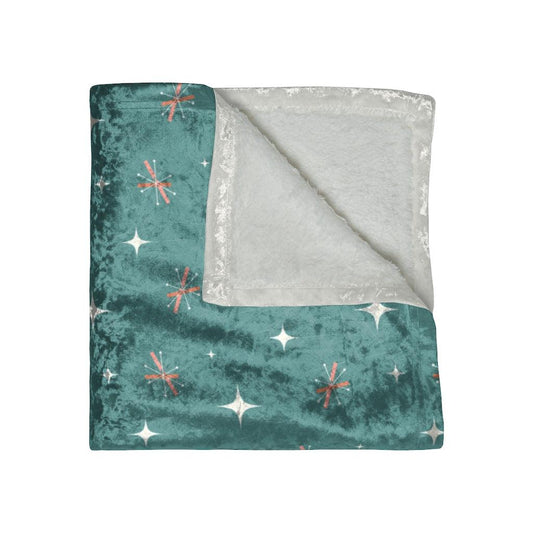 Retro MCM Starburst Mint Green Velveteen Lightweight Blanket