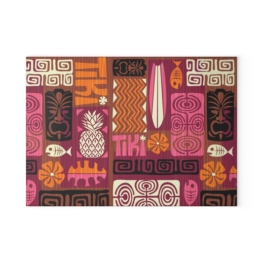 Retro 60s Tiki Mid Century Mod Brown, Orange & Pink Glass Cutting Board
